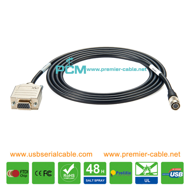 Hirose 6pin to DB9 Female RS232 Cable Right Angle HR10A-7P-6S to D-Sub 15pin