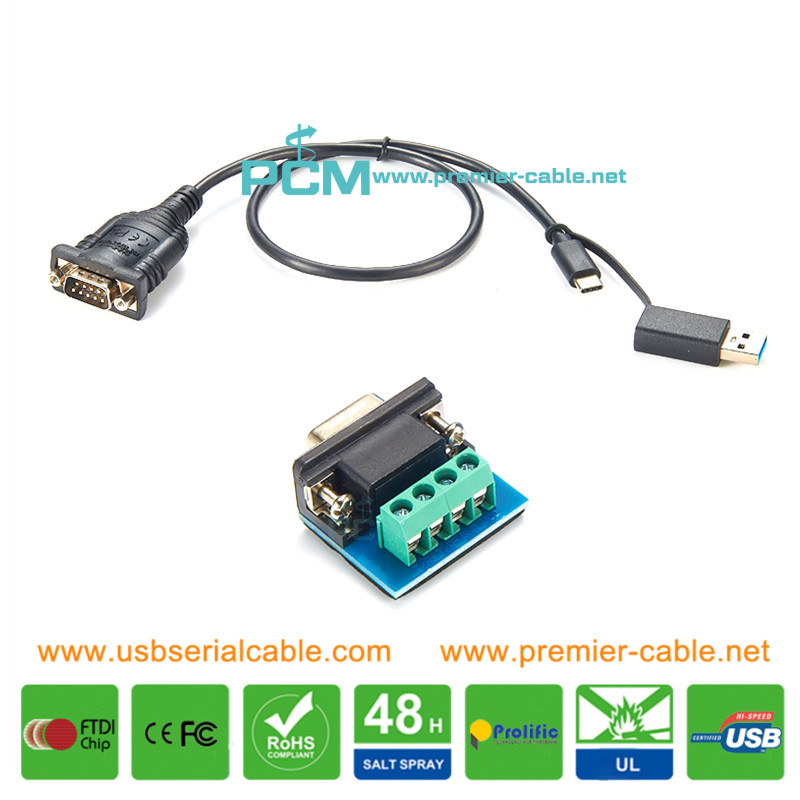 Brand: Premier Cable Connector A: DB9 Connector B: USB3.0 Type A + USB3.1 Type C Length: 10/20/30/50cm or customized Gender: Female-Female/Female-Male/Male-Male or customized