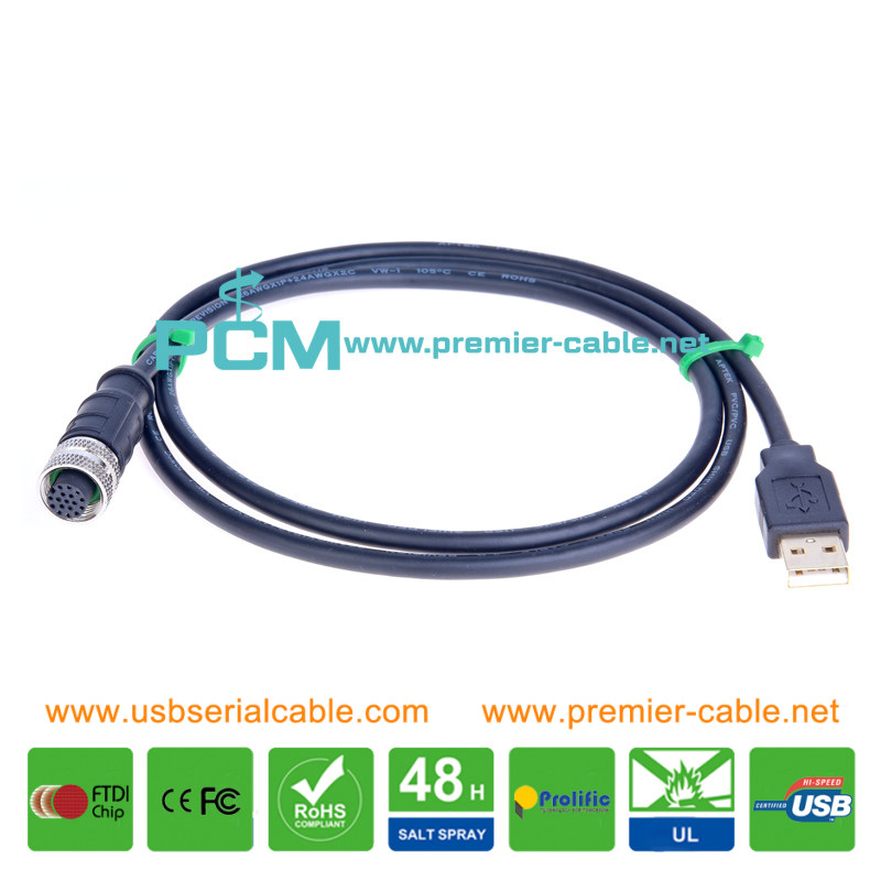 Brand: Premier Cable Connector A: M12 17 Pin Female Connector B: USB2.0 A Male Length: 10/20/30/50cm or customized Gender: Female-Female/Female-Male/Male-Male or customized