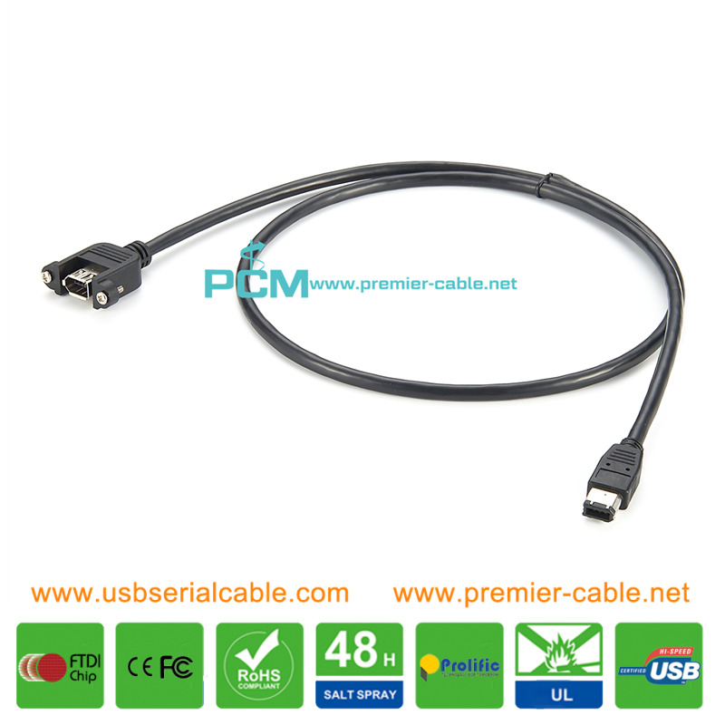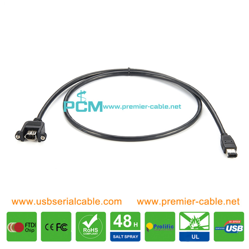 Describe: FireWire Panel Mount Extension Cable IEEE-1394 FireWire 400 Extension Cable 1394 Firewire 6-Pin Male to Female Cable 1394 Firewire Screw Lock Panel Mount Cable FireWire 400 IEEE-1394 6 pin male to 6 pin female Communication between most devices with a 6-pin Firewire port