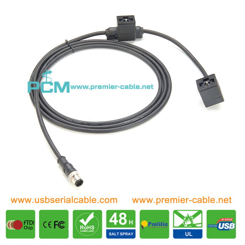 M12 to Double Solenoid Valve Industrial Sensor Cable