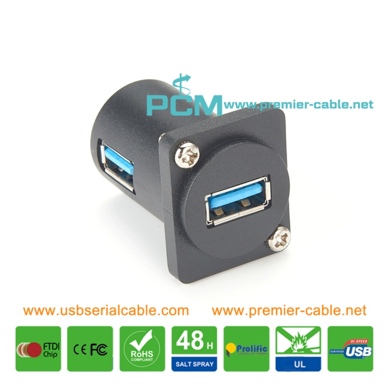 Describe: USB3.0 D Series Panel-Mount Connector USB 3.0 Pass Through Connector D-type USB 3.0 Panel-Mount Connector D-Type Right Angle Coupler USB 3.0 Female D Series Heavy Duty Chassis Panel Mount Connector D type USB Socket Pass Connector USB3.0 Connector Panel Mount