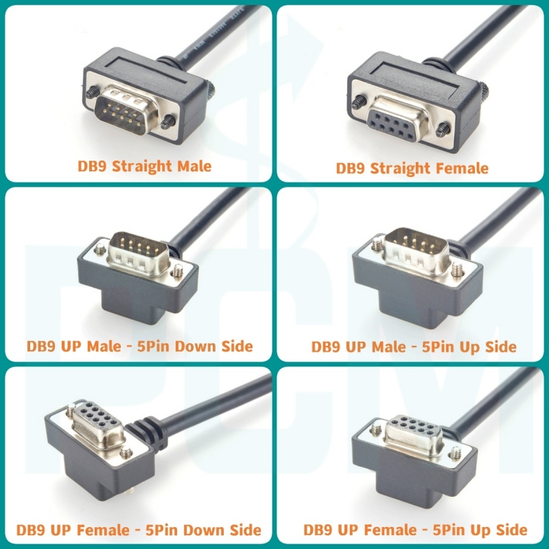 1. Slim Low Profile STRAIGHT DB9 Male Cable 2. Slim Low Profile STRAIGHT DB9 Female Cable 3. Slim Low Profile 45 Angle DB9 Male Cable 4. Slim Low Profile 45 Angle DB9 Female Cable 5. Slim Low Profile UP Angle DB9 Male 5 Pin Down Side Cable 6. Slim Low Profile UP Angle DB9 Male 5 Pin Up Side Cable 7. Slim Low Profile UP Angle DB9 Female 5 Pin Down Side Cable 8. Slim Low Profile UP Angle DB9 Female 5 Pin Up Side Cable 9. Slim Low Profile Right Angle DB9 Male 5 Pin Down Side Cable 10.Slim Low Profile Right Angle DB9 Male 5 Pin Up Side Cable 11. Slim Low Profile Right Angle DB9 Female 5 Pin Down Side Cable 12. Slim Low Profile Right Angle DB9 Female 5 Pin Up Side Cable