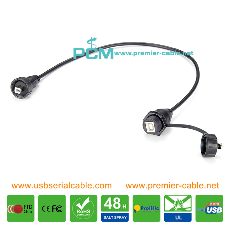 IP67 Waterproof Panel Mount USB Type-B to Type-B 2.0