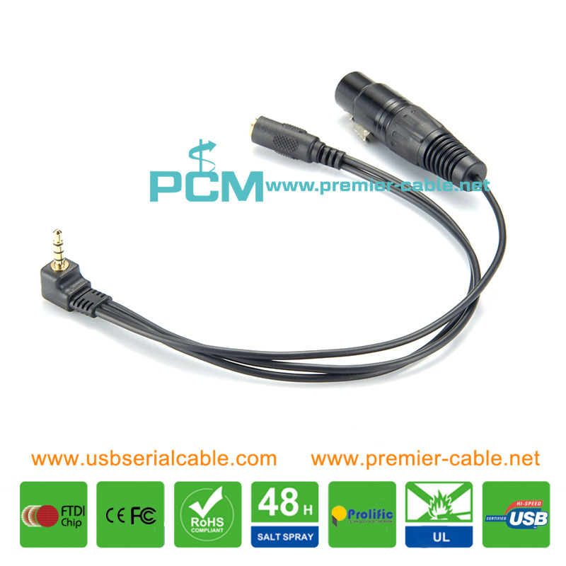 Angle TRRS to XLR Mic 3.5mm Jack Headphone Splitter Cable