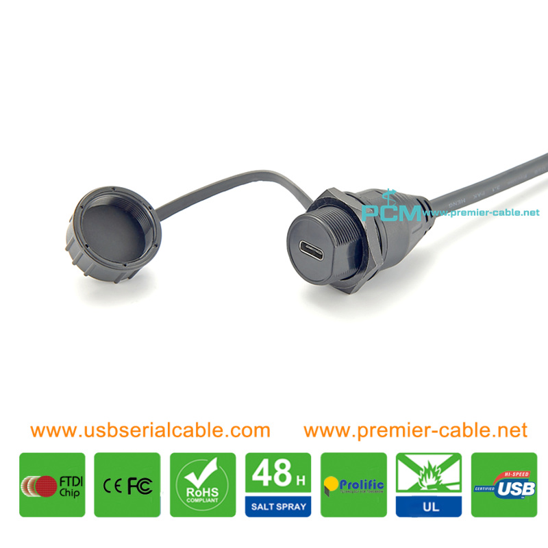 30cm USB Type C 2.0 Car Mount Dash Flush Waterproof Extension Cable for Car, Boat, Motorcycle, Truck Dashboard
