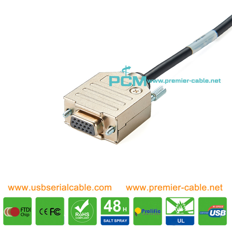 Hirose 6pin to DB9 Female RS232 Cable Right Angle HR10A-7P-6S to D-Sub 15pin