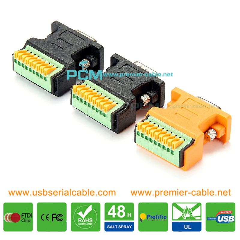 Brand: Premier Cable Connector A: D-Sub 9 Pin Connector B: 9 Pin Terminal Block Length: Adapter or customized Gender: Female-Female/Female-Male/Male-Male or customized