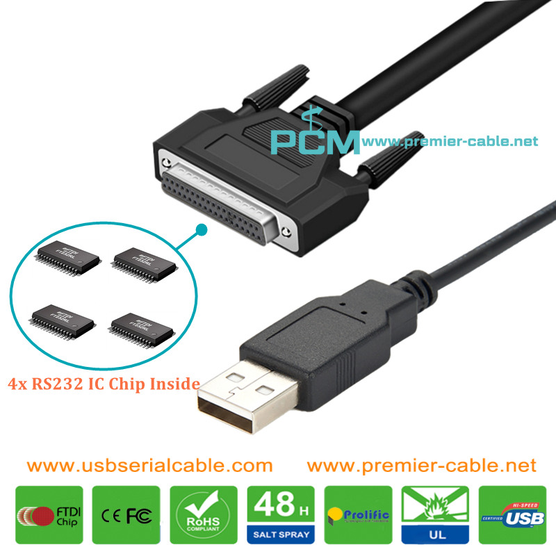 RS232 DB37 to 4x DB9 MOXA CBL-M37M9x4 Serial Cable