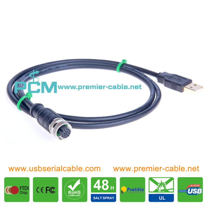 Brand: Premier Cable Connector A: M12 17 Pin Female Connector B: USB2.0 A Male Length: 10/20/30/50cm or customized Gender: Female-Female/Female-Male/Male-Male or customized