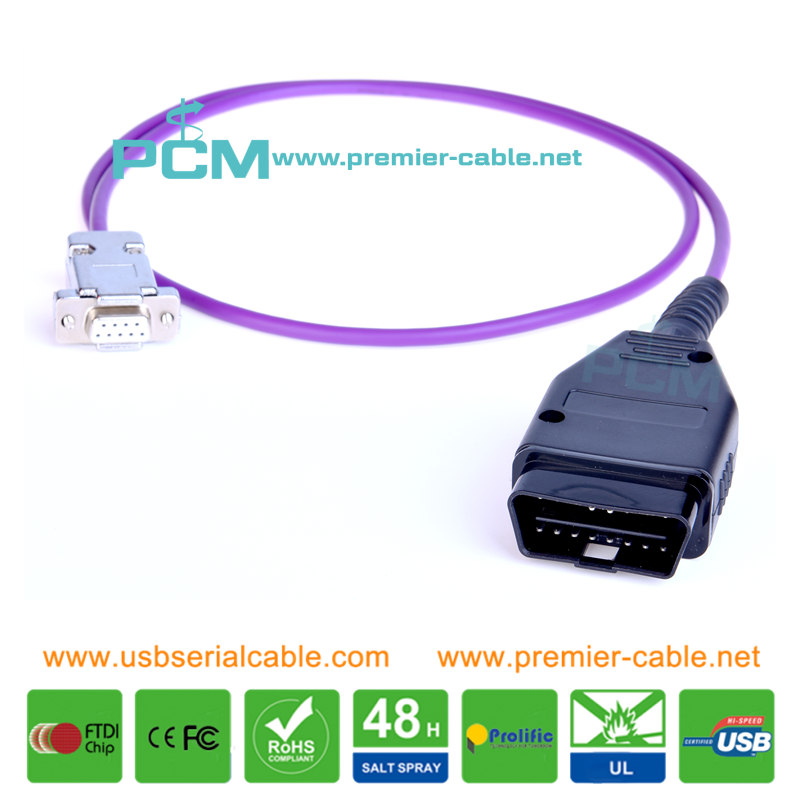 Brand: Premier Cable Connector A: OBD-II Connector B: DB9 Length: 10/20/30/50cm or customized Gender: Female-Female/Female-Male/Male-Male or customized