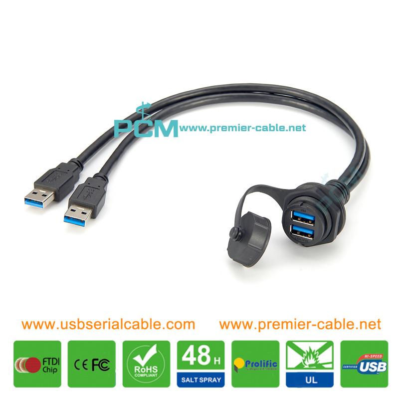 Describe: Industrial USB3.0 Dual Port Cable USB3.0 Double Ports Waterproof Car Wheel Motorcycle Dashboard Panel Data Cable USB 3.0 A Male to Female Dual Port Car Mount Flush Cable Waterproof Extension Cable USB 3.0 AUX Flush Mount Car Mount Extension Cable for Car Truck Boat Motorcycle Dashboard Panel