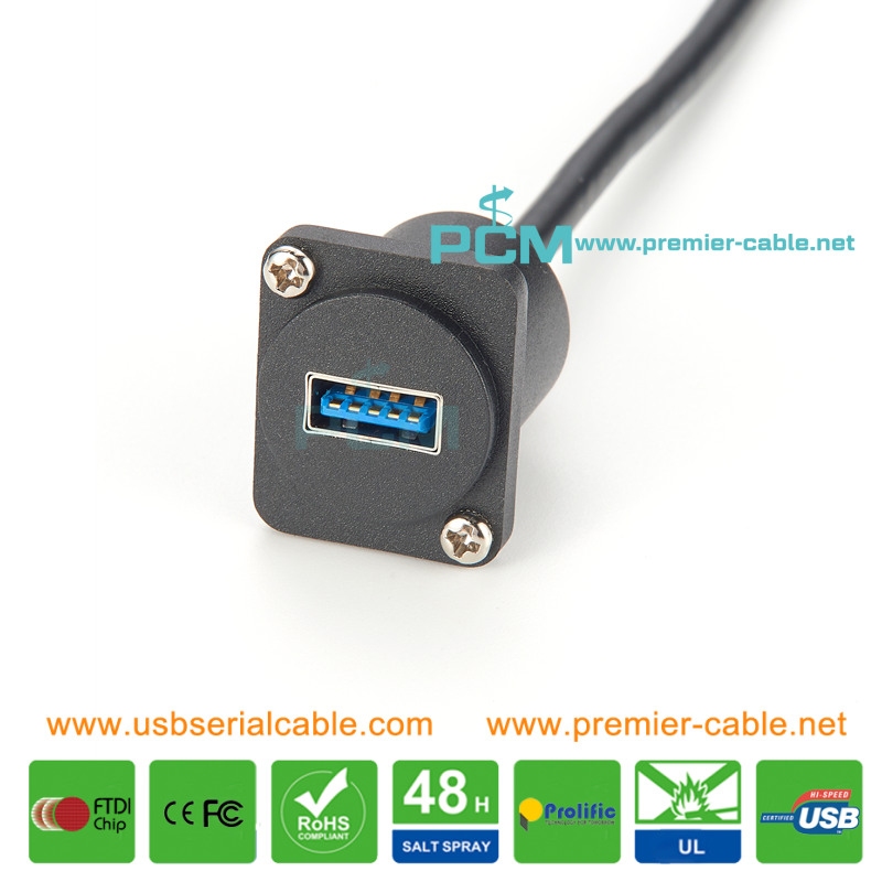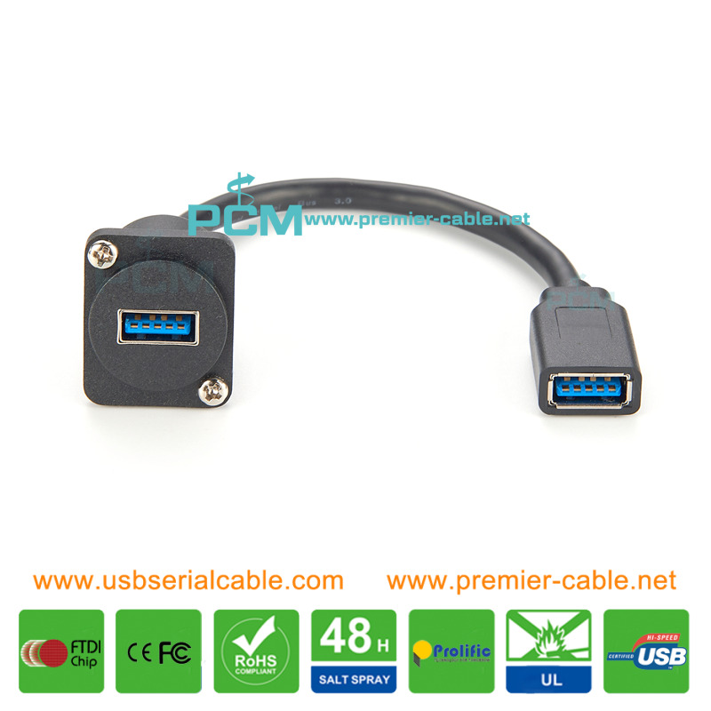 D Type USB3.0 Female to Female Screwing Flush Mount Cable
