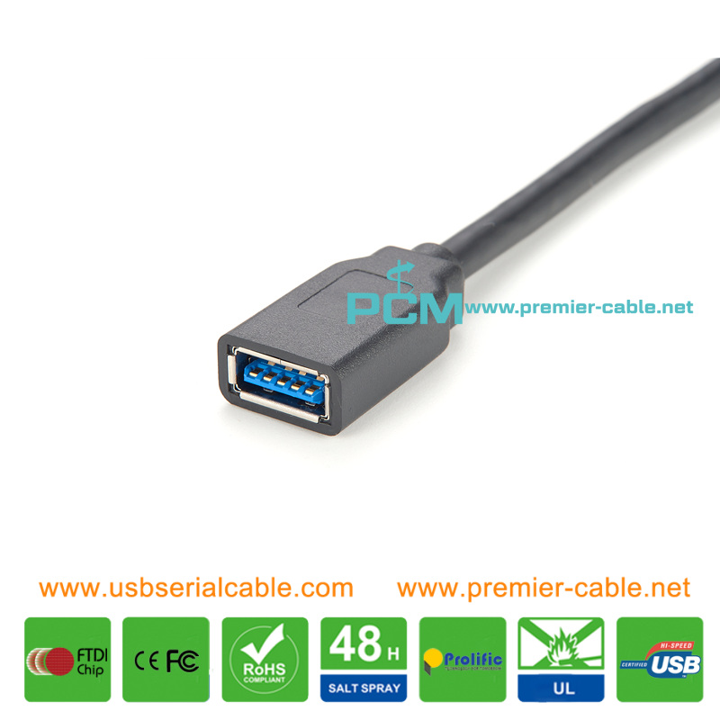 USB 3.0 Female Extension Cable with Screw Panel Mount Holes