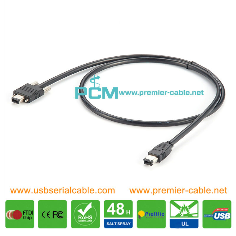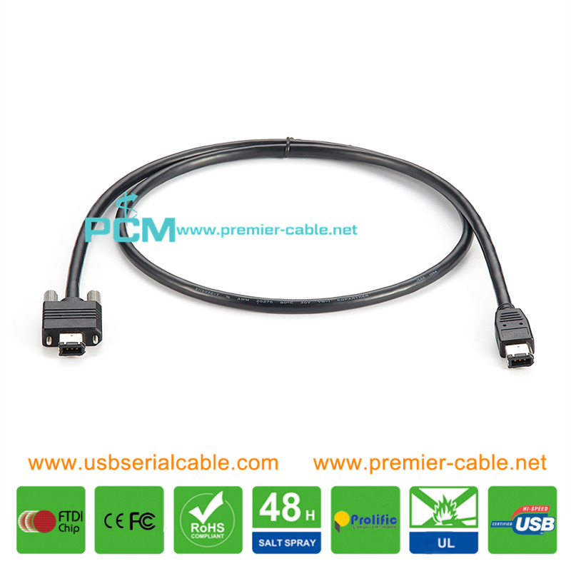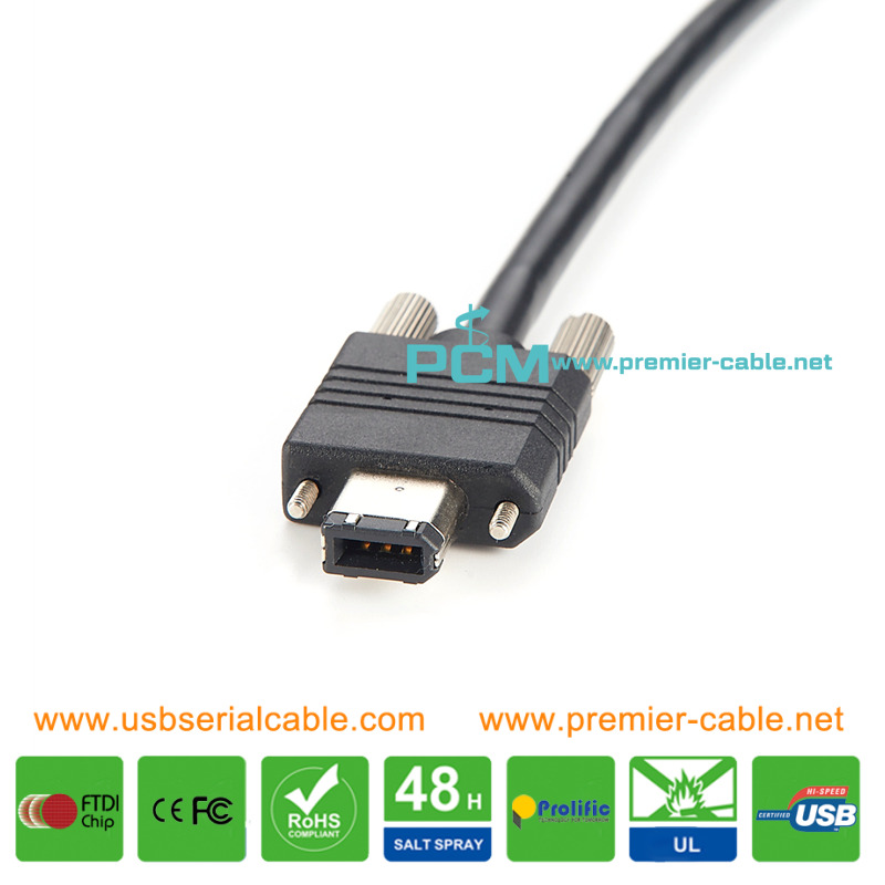 Describe: FireWire 400 6 Pin with Screw Locking FireWire 1394a 6 Pin Male with Screw Lock FireWire 400, 6 Pin to 6 Pin, Screw Locking FireWire 400 Screw Locking Industrial Mechanism Cable Suitable for industrial application, Screw-lock mechanism.