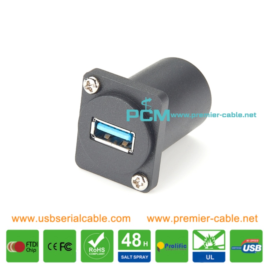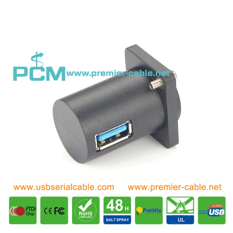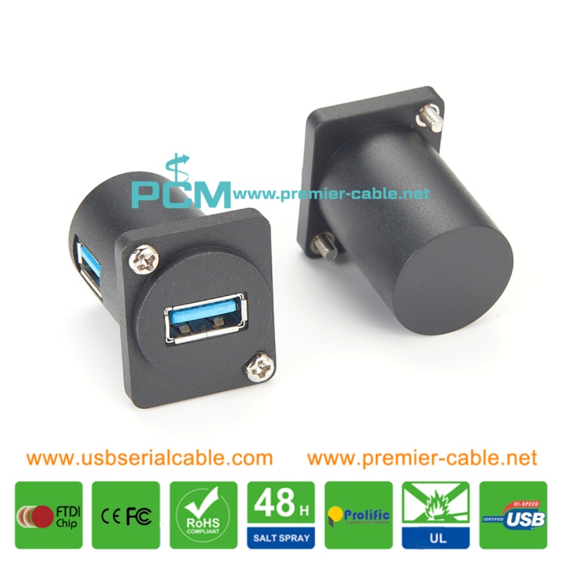 Describe: USB3.0 D Series Panel-Mount Connector USB 3.0 Pass Through Connector D-type USB 3.0 Panel-Mount Connector D-Type Right Angle Coupler USB 3.0 Female D Series Heavy Duty Chassis Panel Mount Connector D type USB Socket Pass Connector USB3.0 Connector Panel Mount