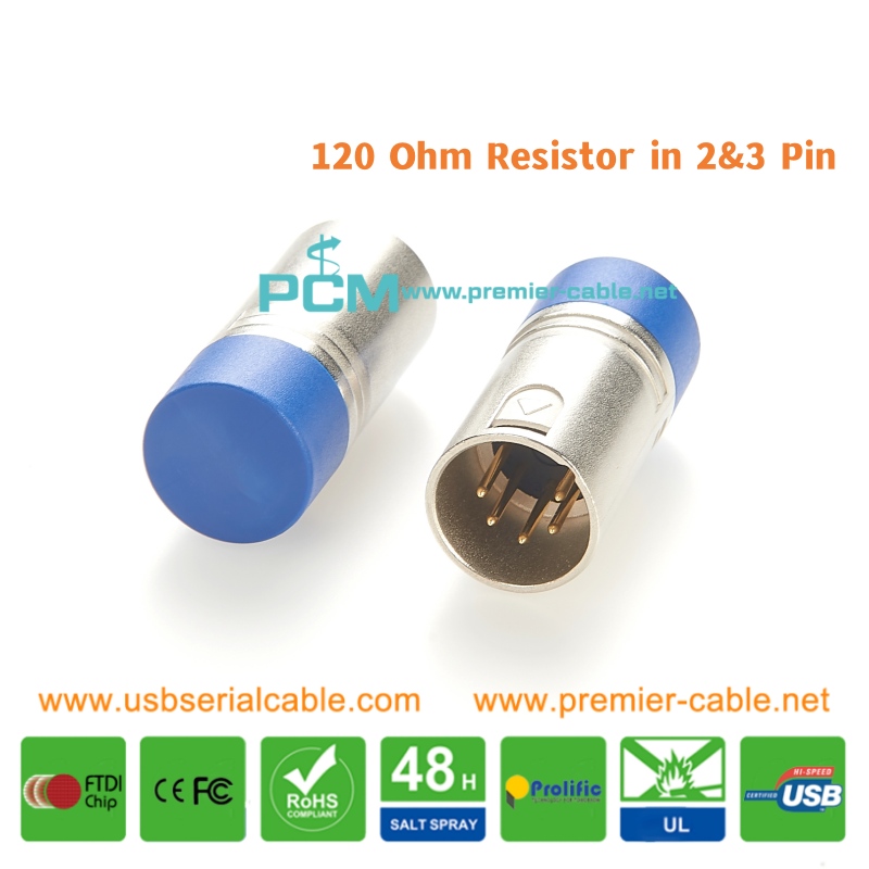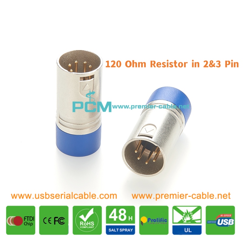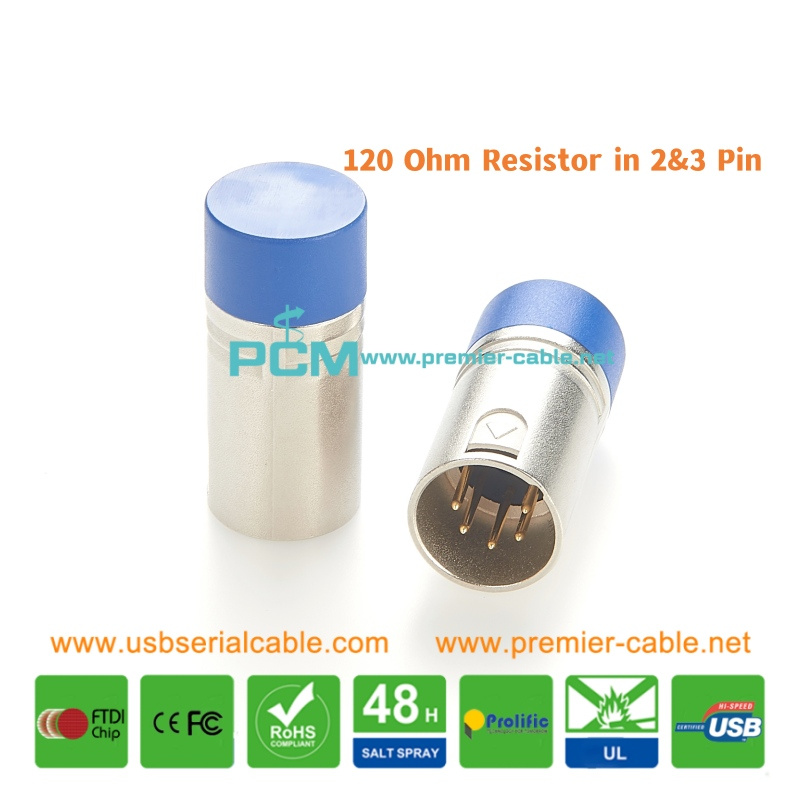 Item: XLR Plug 5-pole terminating resistor Connector: XLR 5Pin Length: Connector Gender: Female/Male or customized Manufacturer: Premier Cable