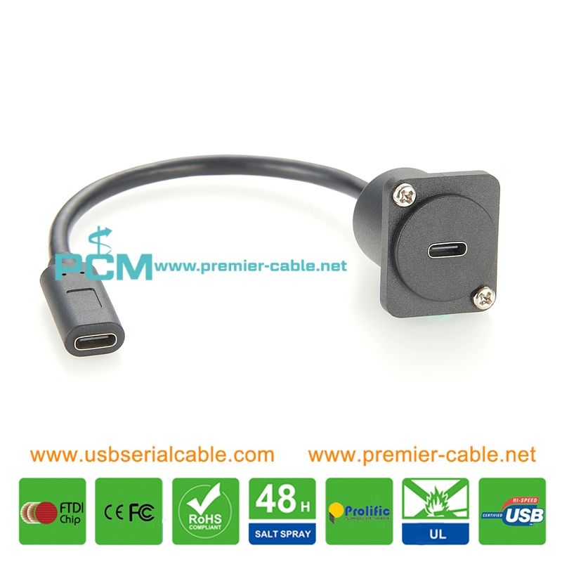 Item: USB3.1 D Type Panel Cable Connector A: USB3.1 Type C Female Connector B: USB3.1 Type C Female Length: 10/20/30/50cm or customized Gender: Female-Female/Female-Male/Male-Male or customized Manufacturer: Premier Cable