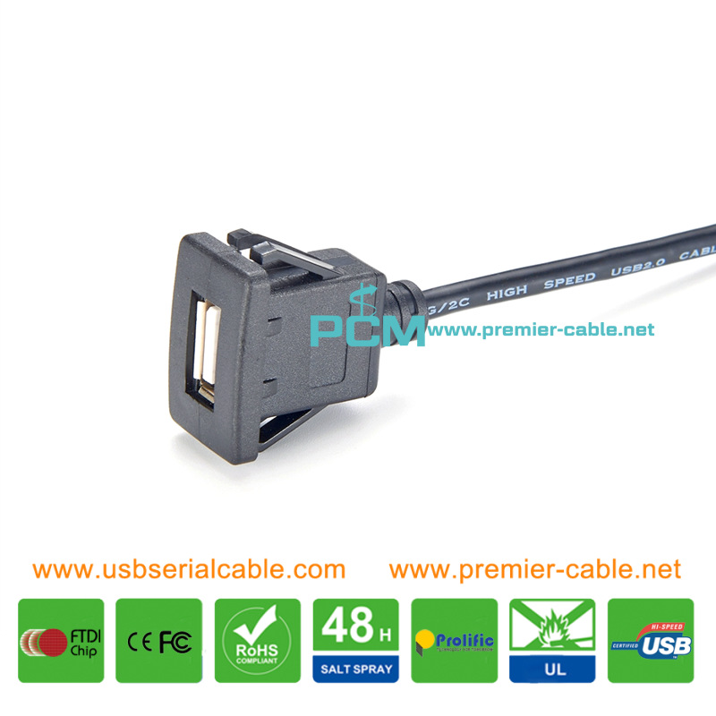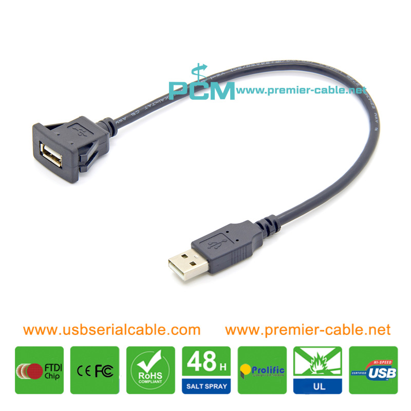 USB A Female to A Male Panel Mount Snap In Cable