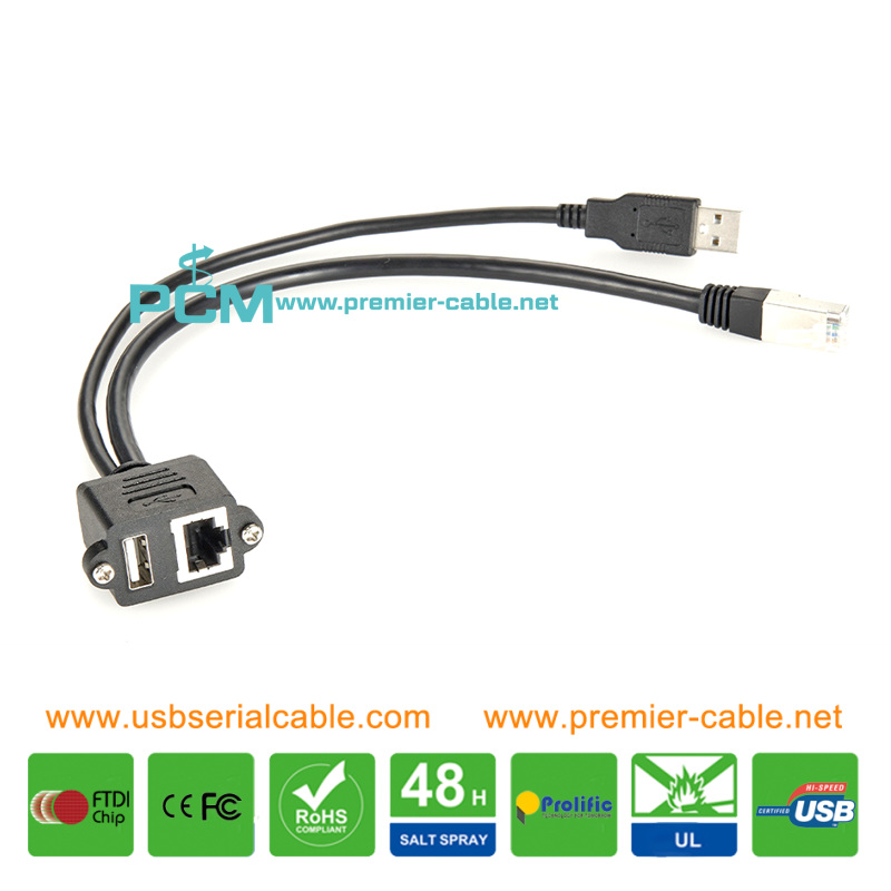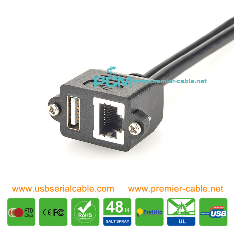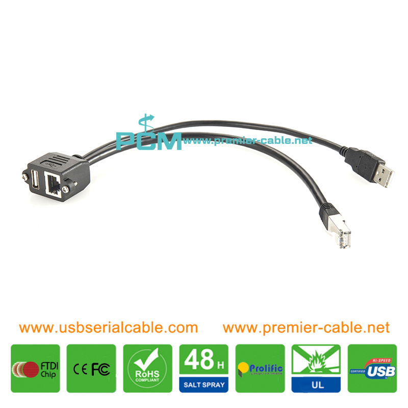 * Combo Jack, Single Port RJ45, Shielded, Single USB , Panel Mount Cable