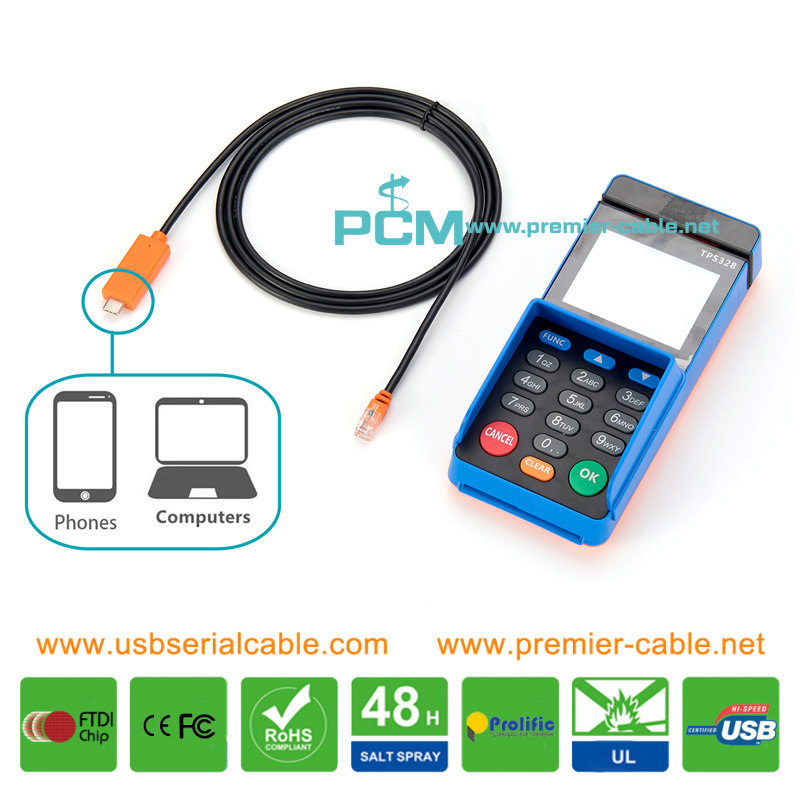 USB-C to RJ9 RJ11 4P4C Pin Pad Scanpad Keypad Cable